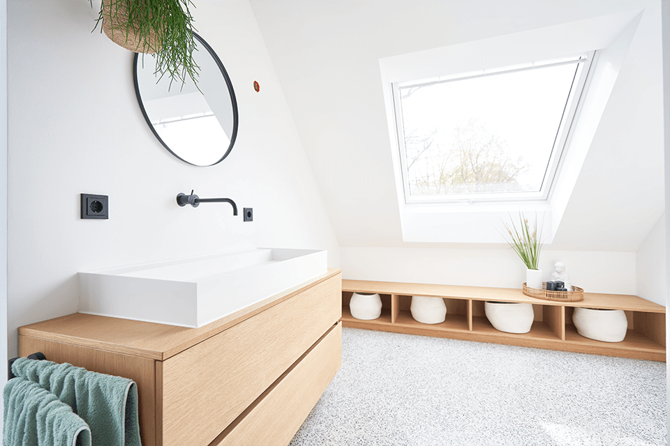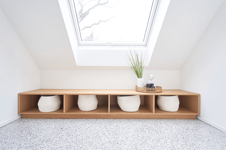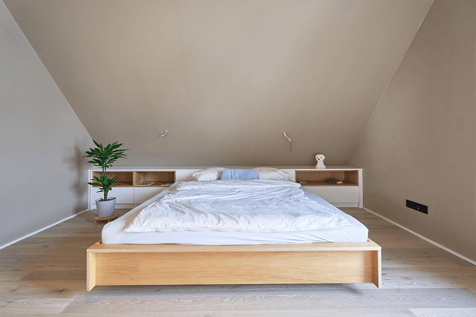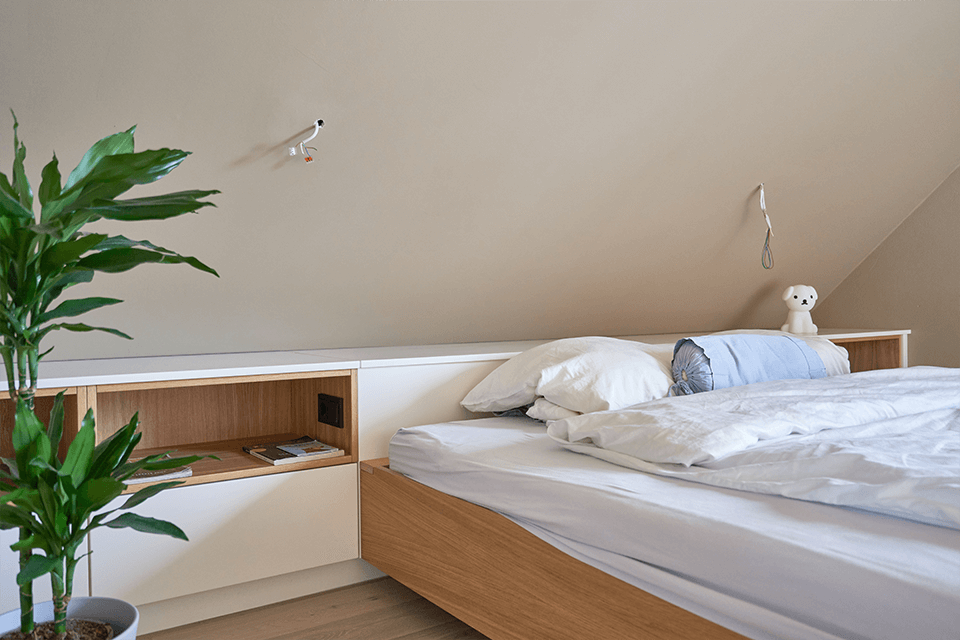 Von der einladenden Treppe über die maßgefertigten Badezimmermöbel bis hin zu eleganten Betten und Schreibtischen sowie wandelementen und trennwänden – jedes Stück wurde mit viel Liebe zum Detail gestaltet. Besonders hervorzuheben sind die maßgeschneiderten Schlafzimmerschränke mit einer eleganten Glanzoptik.