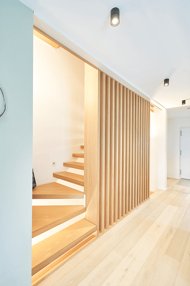 Eine private Wohnlösung, bei der schöne Holzelemente gekonnt in das Interieur integriert wurden, zeigt unser neuestes Projekt.
